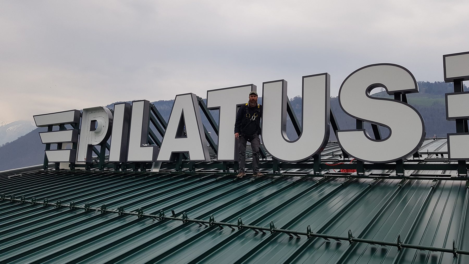 Für einen der grössten Arbeitgeber in der Zentralschweiz durften wir im wahrsten Sinne in neuen Dimensionen denken: Die Pilatus Flugwerkzeuge AG hat mit ihrer neuen Strukturbauhalle am Flugplatz Buochs eine der grössten freitragenden Holzhallen geschaffen. Auf dem Dach des Prestigeobjekts sollte künftig ein 15 Meter langer Schriftzug des einzigen Schweizer Unternehmens stehen, das Flugzeuge entwickelt, baut und auf allen Kontinenten verkauft.