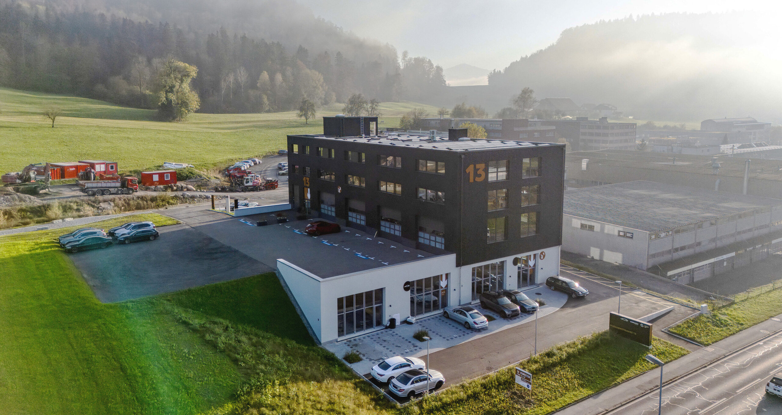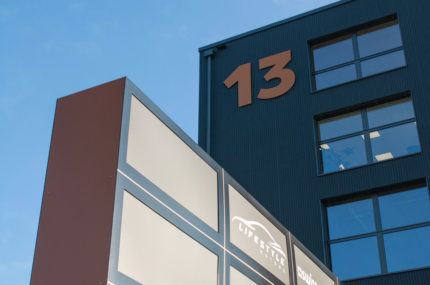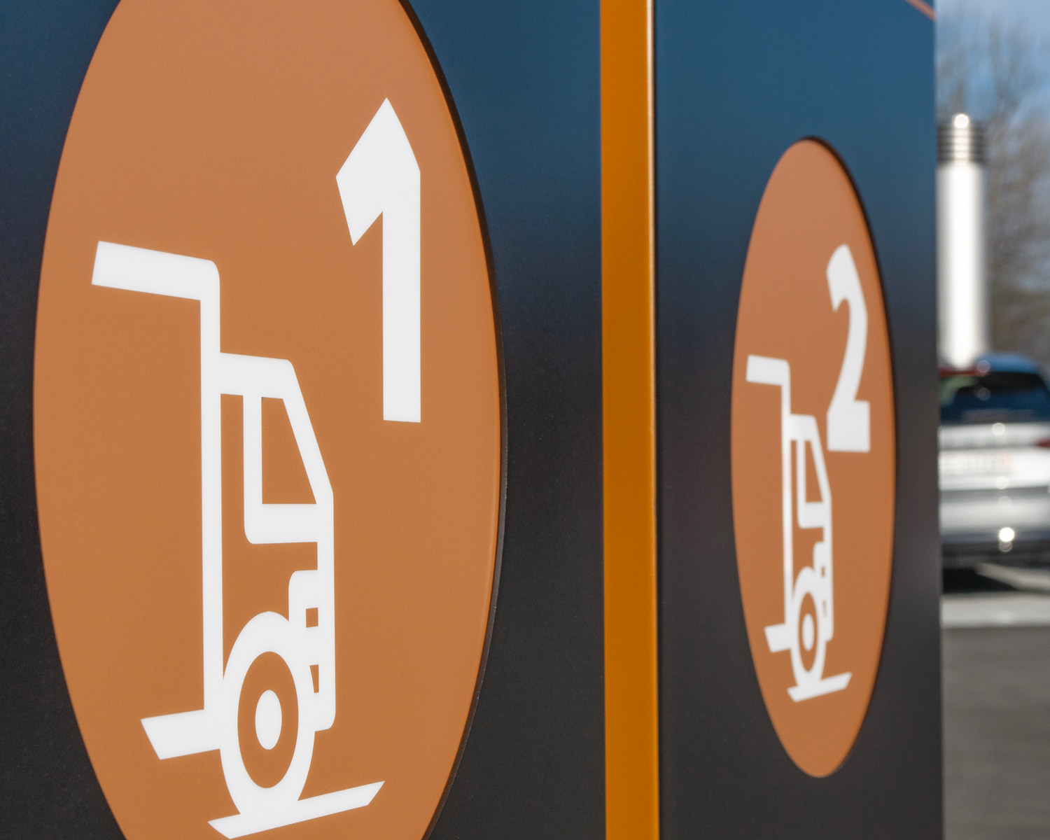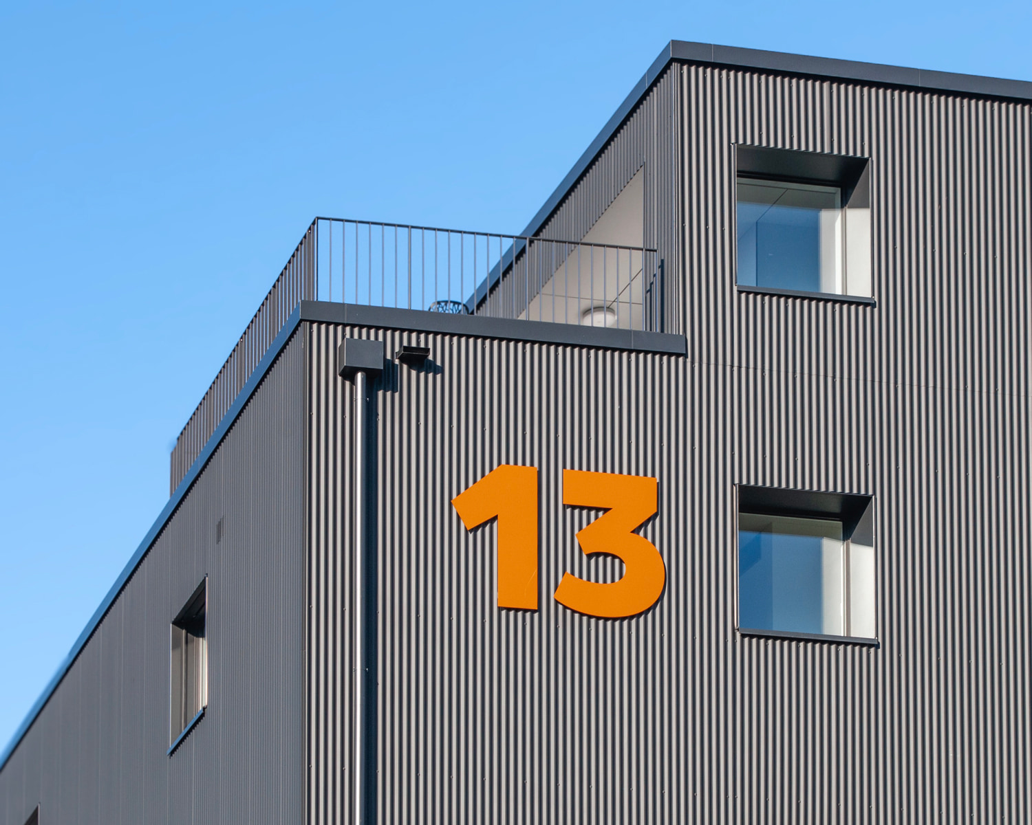 Das Gebäude kombiniert Beton, Holz und Stahl zu einem markanten Look. Die Signaletik sollte dieses Design unterstreichen, aber auch klare Orientierung bieten. Die Anforderungen waren hoch: langlebige Materialien, optimale Lesbarkeit und eine harmonische Integration in das architektonische Konzept.